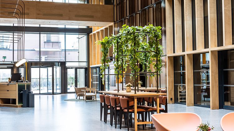- Den høye, T-formede lobbyen blir et bygulv som skal brukes av hotellet, av de andre bedriftene som holder til i bygget og av de som bor og jobber på området