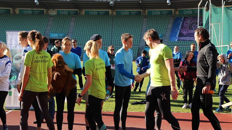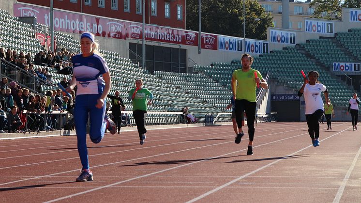 Viseadministrerende direktør Bjørn Arild Wisth løp siste-etappen mot Ezinne Okparaebo.