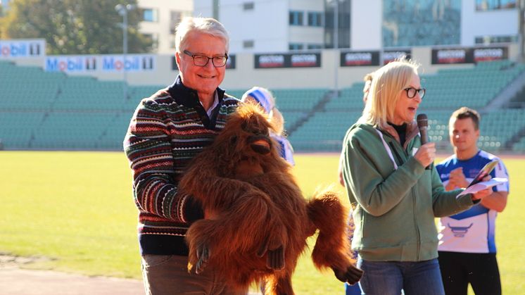 Ordfører Fabian Stang delte ut premie og Karen Marie Ellefsen kommenterte stafetten.